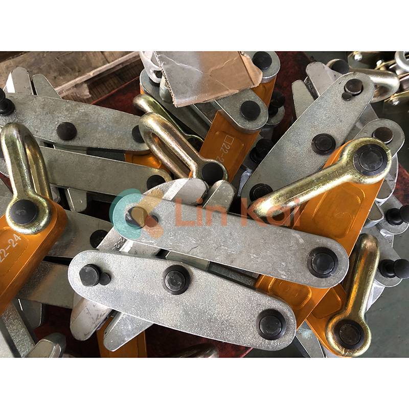 架空送電線の GSW ケーブルの設置とストリングは、中国の寧波 Lingkai Manufacture によって製造された接地線グリップを使用して行われます。 GSW ケーブルは硬線で構成されているため、GSW ケーブルを可能な限り強力に保持することを目的として、アース線グリップのジョーは特定の合金鋼で作られる必要があります。この SKDZ モデル アース ワイヤー グリップの最大耐荷重は 50KN です。さらに、軽量であり、アース線の締め付けや支線付きタワーの鋼より線の調整に適しています。